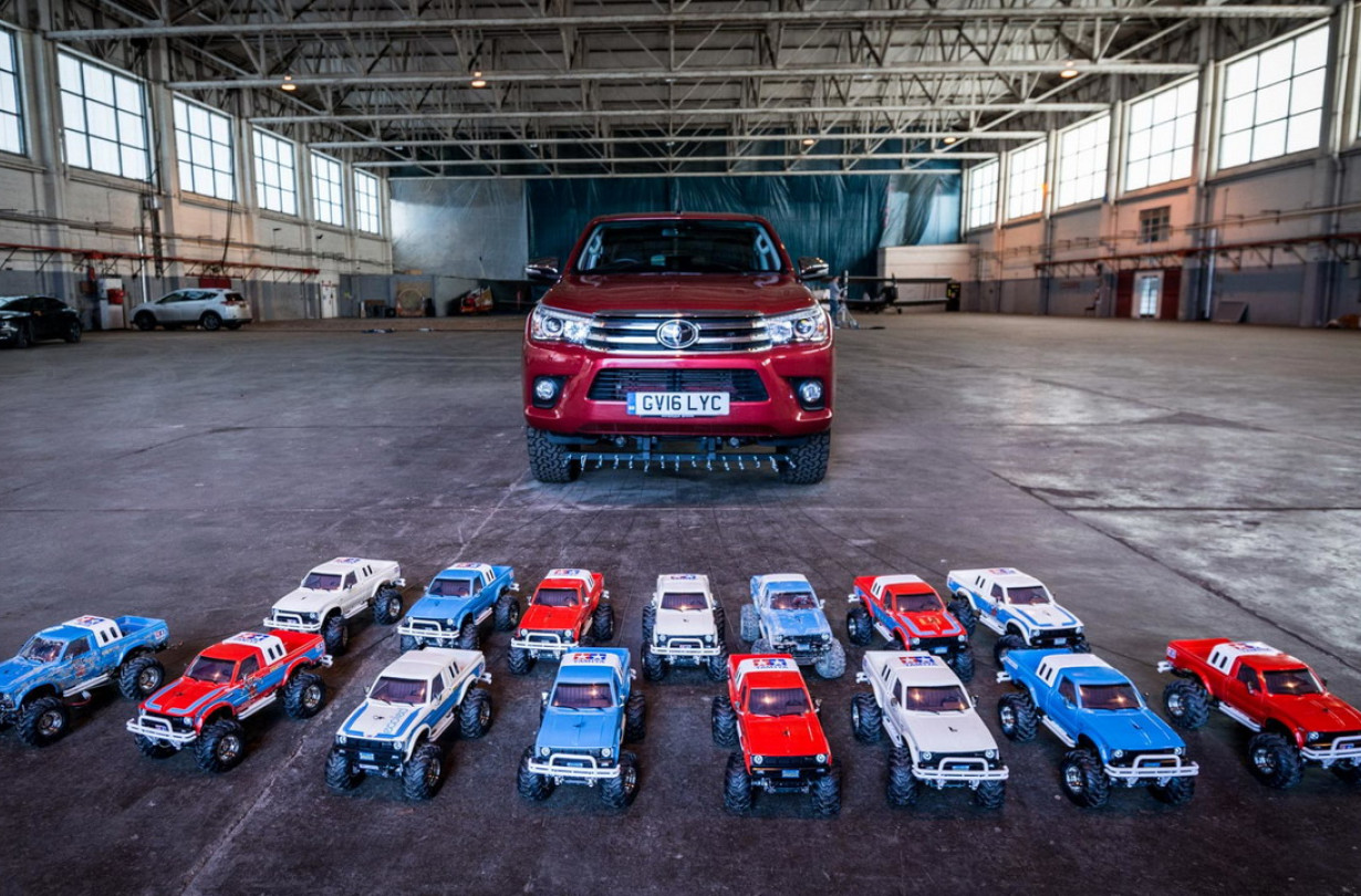Η Toyota και η Tamiya, που φτιάχνει τα μοντελάκια, συνεργάστηκαν στη Βρετανία για να απαντήσουν στο κρίσιμο ερώτημα: πόσα τηλεκατευθυνόμενα pick-up χρειάζονται για να τραβήξουν το νέο pick-up Toyota Hilux;
