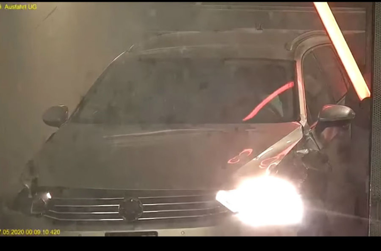 Μάλλον δεν υπολόγισε καλά, μπήκε με φόρα, χτύπησε το κράσπεδο και από εκεί και μετά το Passat Variant που οδηγούσε άρχισε να κτυπά δεξιά και αριστέρα από τοίχο σε τοίχο σαν μπαλάκι. Αφού κατέστρεψε το μηχάνημα ακύρωσης των εισιτηρίων και σημάδεψε για τα καλά τους τοίχους, κατάφερε να φρακάρει, αλλά και πάλι δεν το έβαλε κάτω.