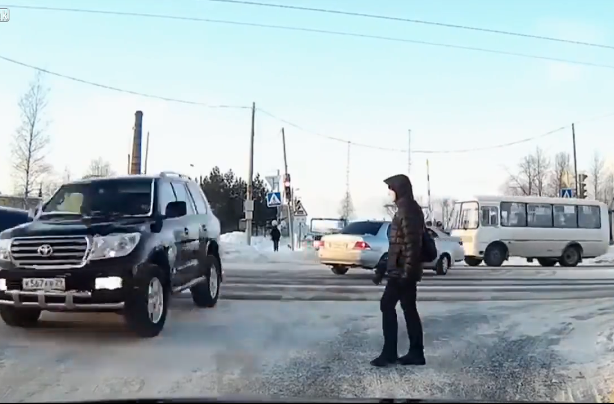 Ο πεζός πρωταγωνιστής της ιστορίας μας πάντως δεν έκανε κάτι που να είναι εξώφθαλμα λάθος. Ο δρόμος ήταν μεν παγωμένος, όμως όταν επιχείρησε να τον διασχίσει, το αυτοκίνητο με την κάμερα στο ταμπλό ήταν σταματημένο στη μια λωρίδα, ενώ στην άλλη διέσχιζε τη διασταύρωση προσεκτικά ένα τεράστιο, μαύρο Land Cruiser 200, που με τον όγκο του τον «σκρινάριζε» πλήρως.