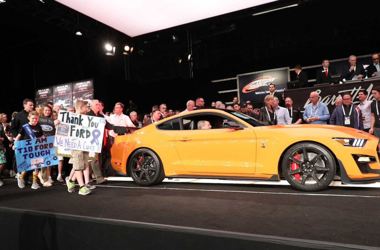 Το Ford Mustang Shelby GT500 με αριθμό παραγωγής VIN 001, δημοπρατήθηκε χθες στην Αριζόνα έναντι $1.100.000 δολάρια (περίπου 970.000 ευρώ), τα οποία διατέθηκαν για φιλανθρωπικό σκοπό στη μάχη κατά του παιδικού διαβήτη.