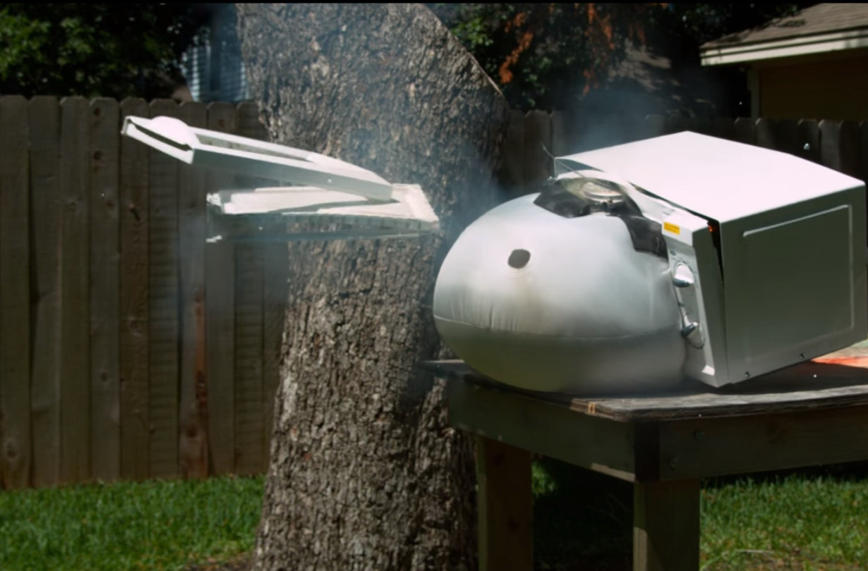 Ευτυχώς, οι Slo-Mo Guys έκαναν και κινηματογράφησαν τι συμβαίνει όταν φουρνίσετε ένα αερόσακο, με τη βοήθεια μιας κάμερας υψηλής ταχύτητας Phantom Flex 4K που είναι ικανή για 2.500 καρέ ανά δευτερόλεπτο. Τα τόσο απίστευτα και καταστροφικά αποτελέσματα σαφώς και δεν αποτελούν έκπληξη. Ο φούρνος μικροκυμάτων τινάζεται ψηλά και παραμορφώνεται από την έκρηξη, ενώ η πόρτα του εκσφενδονίζεται στην άλλη πλευρά της αυλής.