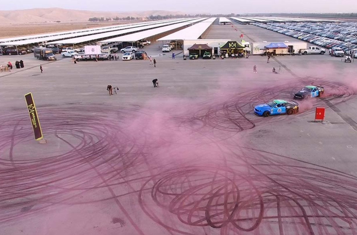 Η προσπάθεια επίτευξης του ρεκόρ έγινε από την Al Jazirah Vehicles Agencies, αντιπρόσωπο της Ford στη Σαουδική Αραβία, και την αντίστοιχη αγωνιστική ομάδα Al Jazirah Ford Racing. Τα… σύνεργα ζωγραφικής ήταν δύο Ford Mustang προηγούμενης γενιάς σε έκδοση RTR-D, δηλαδή με τις βελτιώσεις που προτείνει ο drifter Vaughn Gittin Jr. για τέτοια χρήση. Και ο καμβάς, ένας χώρος συγκέντρωσης καινούργιων αυτοκινήτων πριν την αποστολή τους για παράδοση, στο Riyadh.