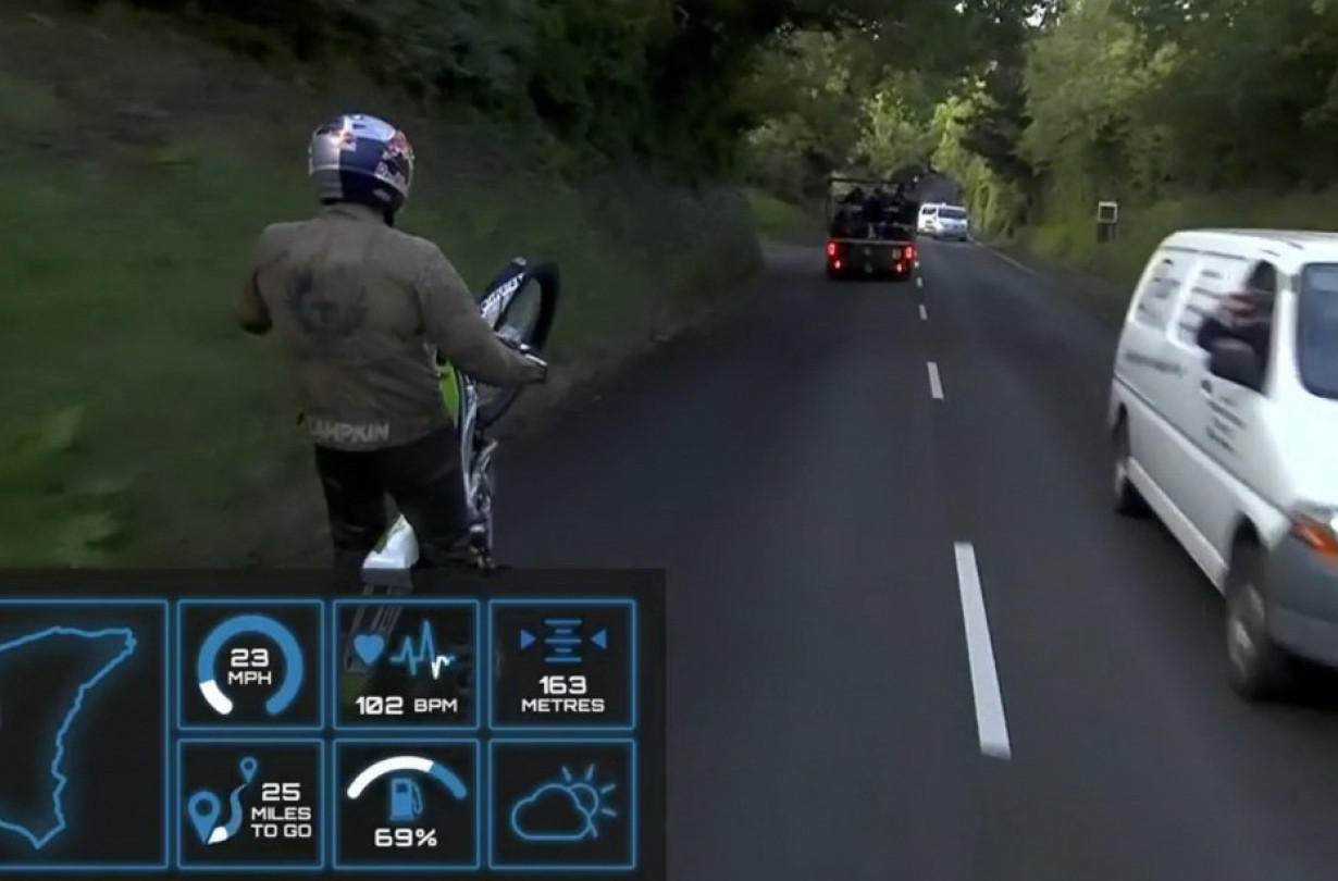 Ο 12 φορές παγκόσμιος πρωταθλητής τράιαλ, Dougie Lampkin, ήθελε ανέκαθεν να το δοκιμάσει και χθες, 25 Σεπτεμβρίου, είχε την ευκαιρία παρότι ο καιρός τον ανάγκασε να αναβάλει την προσπάθεια και να την ξεκινήσει στις 5 το απόγευμα.