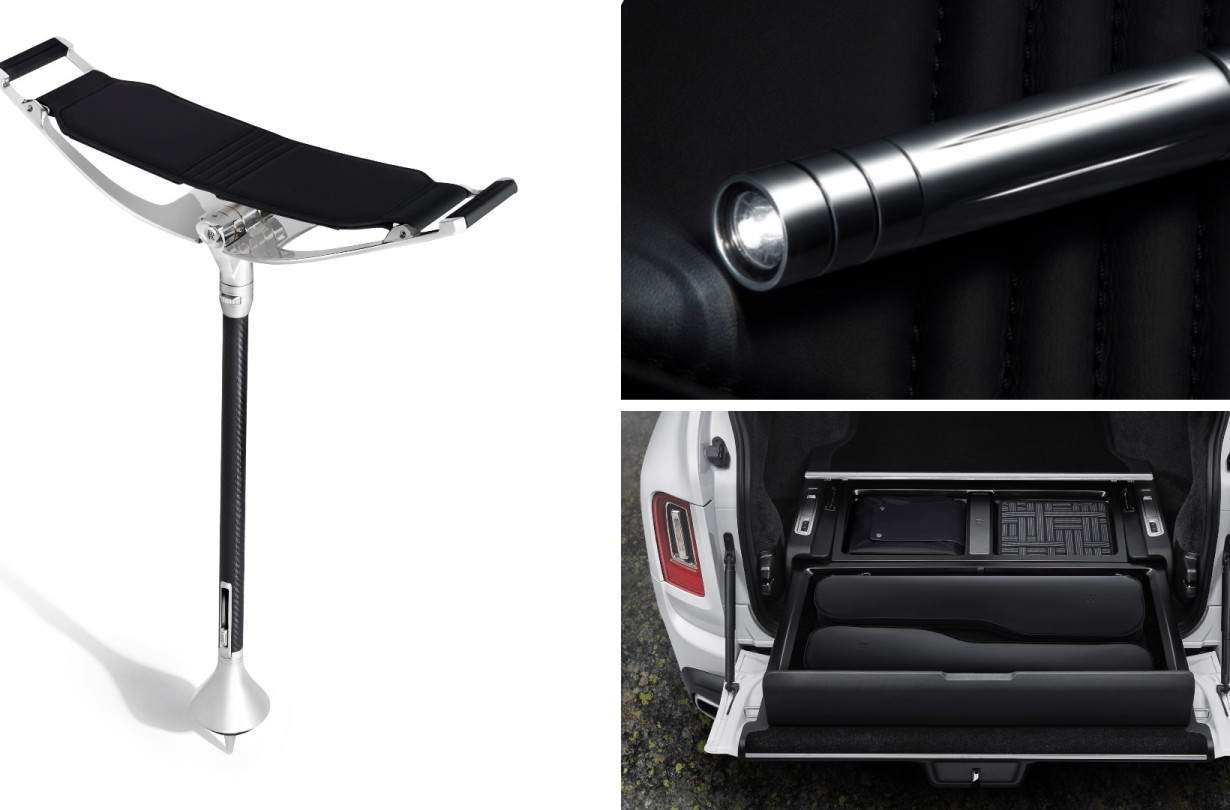 Το Pursuit Seat αποτελεί ανασχεδιασμό ενός παλαιότερου αξεσουάρ και είναι μια δημιουργία της σχεδιαστικής ομάδας της Rolls-Royce στο Goodwood. Το άνετο κάθισμα έχει επένδυση από χειροποίητο δέρμα και μπορεί να βαφτεί στην απόχρωση που επιθυμεί ο ιδιοκτήτης, ενώ φέρει το έμβλημα Spirit of Ecstasy. Το πόδι είναι κατασκευασμένο από ανθρακονήματα και αλουμίνιο ώστε να είναι ελαφρύ και δυνατό, ενώ έχει τη δυνατότητα ρύθμισης του ύψους. Ένα ανακλινόμενο καρφί στο κάτω μέρος εξασφαλίζει την ασφαλή τοποθέτησή του σε χώμα, άμμο ή γρασίδι.