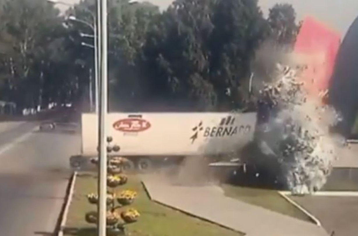 Μια νταλίκα που κινείται με μεγάλη ταχύτητα διασχίζει ένα δρόμο και καρφώνεται πάνω σε ένα μνημείο με αποτέλεσμα τον ακαριαίο θάνατο του οδηγού της, όπως αναφέρεται στα σχετικά τηλεγραφήματα. Στο βίντεο φαίνεται η νταλίκα να μην φρενάρει καθόλου και έτσι τα πρώτα συμεπράσματα της τροχαίας μιλούν για ενδεχόμενη βλάβη στα φρένα. Σαν από θαύμα η νταλίκα στην τρελή της πορεία δεν συγκρούεται με κανένα από τα διερχόμενα εκείνη τη στιγμή αυτοκίνητα.