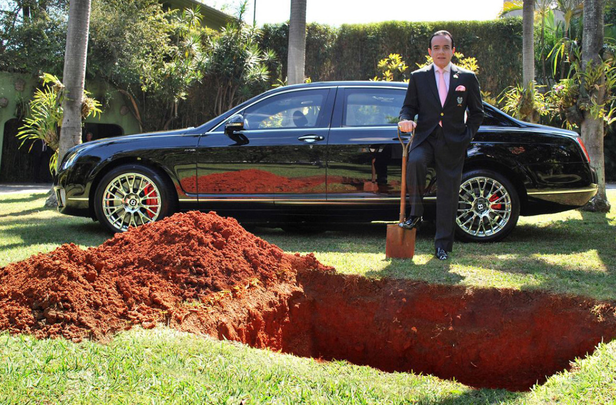 Εμπνευσμένος από ένα ντοκιμαντέρ που είδε με θέμα την ζωή των Φαραώ, ο Βραζιλιάνος βιομήχανος ιταλικής καταγωγής Chiquinho Scarpa αποφάσισε να θάψει έναν από τους «θησαυρούς» του στον κήπο της έπαυλης του στο Σάο Πάολο της Βραζιλίας. Ο «θησαυρός» που θέλησε να θάψει είναι μια Bentley Continental Flying Spur που του κόστισε ένα εκατομμύριο δολάρια.