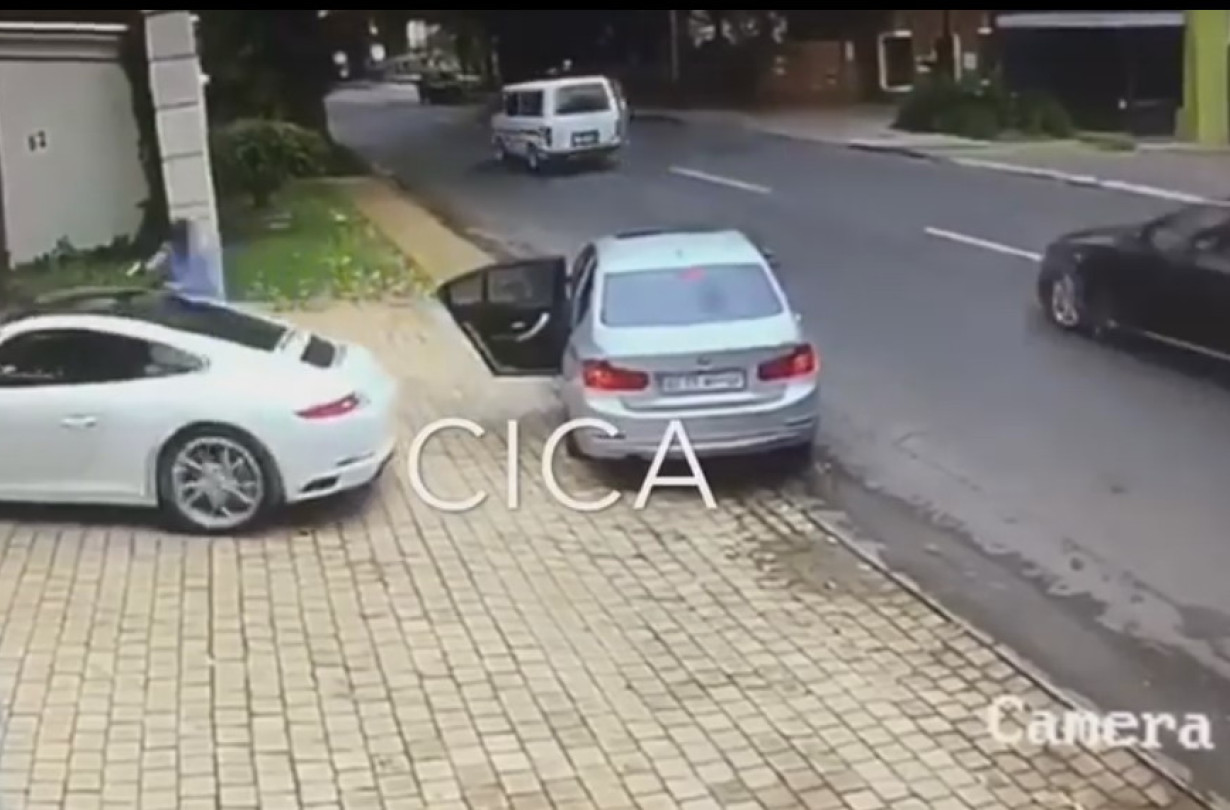 Το περιστατικό συνέβη στο Johannesburg, μέρα μεσημέρι. Βλέπουμε τον οδηγό της Porsche να στρίβει αριστερά σε ιδιωτικό δρομάκι και να περιμένει μάλλον την πύλη να ανοίξει.