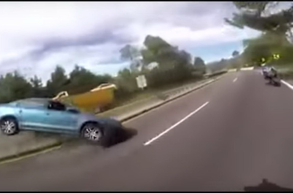 Δεν ξέρουμε τι έχει προηγηθεί της σκηνής του παρακάτω video, αλλά φαίνεται ότι ο οδηγός του αυτοκινήτου έχει πικαριστεί από τους μοτοσικλετιστές. Την ώρα που τον περνούν, επιταχύνει και κάνει μια απειλητική τιμονιά προς το μέρος τους, πατώντας συγχρόνως και φρένο.