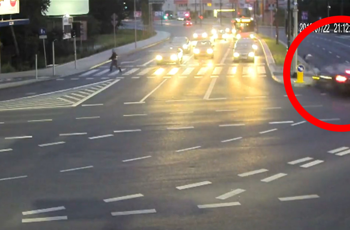 Ευτυχώς γι’ αυτόν, το ασημί ταξί εμφανίζεται από δεξιά και πέφτει πάνω στο αυτοκίνητο που πέρασε «αέρα» με κόκκινο, βγάζοντάς το από την πορεία σύγκρουσης με τον ποδηλάτη, στέλνοντάς το πάνω σε μια κολόνα.