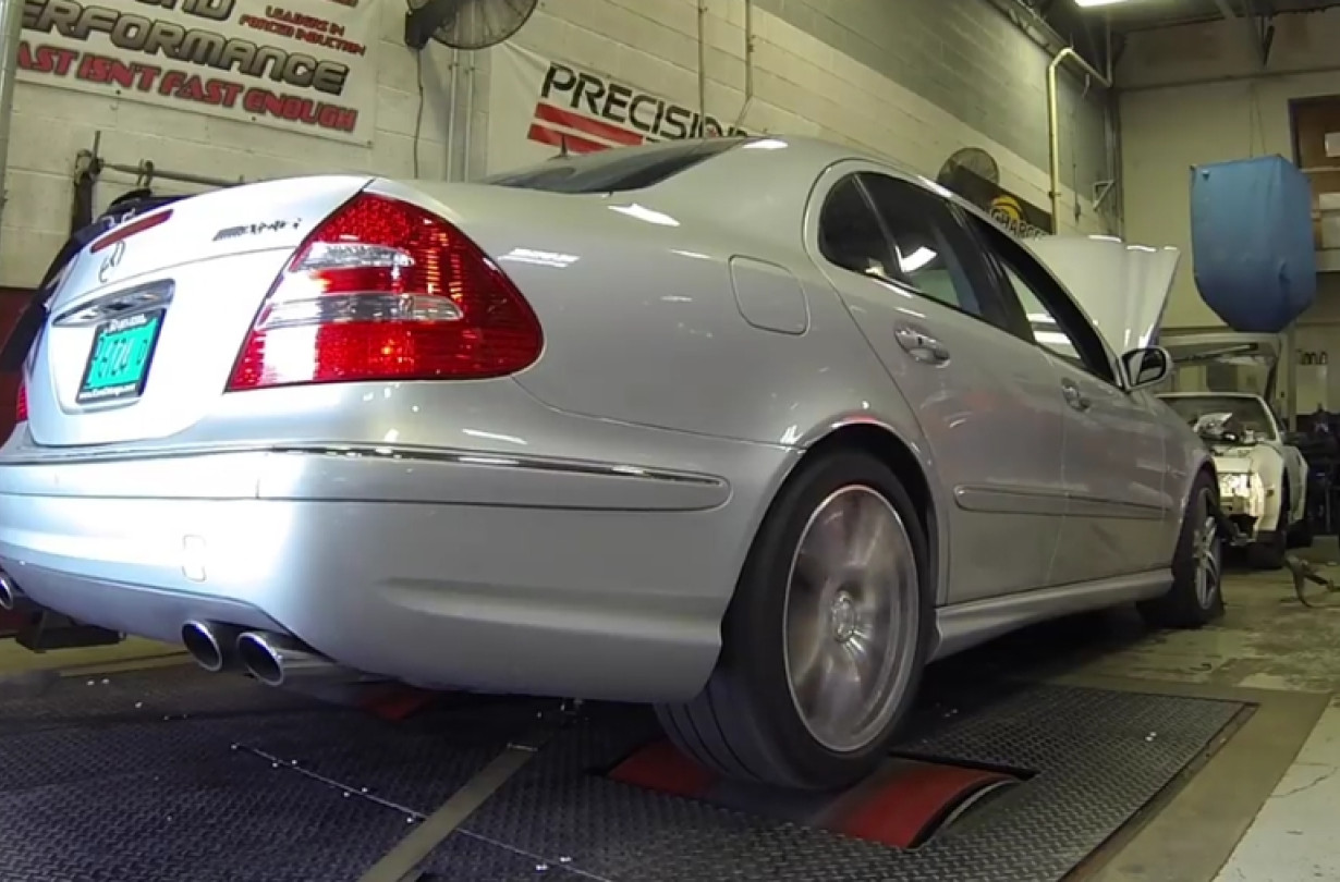 Με 3η σχέση στο κιβώτιο, όπως προτείνεται για τις Mercedes-Benz Ε55 AMG από τον εξειδικευμένο βελτιωτικό οίκο Eurocharged, το αυτοκίνητο σπίναρε πάνω στα ράουλα, οπότε η ροπή δεν ήταν η αναμενόμενη. Με την τρίτη προσπάθεια, με έξτρα βάρος πάνω από τους πίσω τροχούς, η ροπή έφτασε τα 62,2 kgm. Η ισχύς παρέμενε σε όλες τις μετρήσεις πάνω από τους 360 ίππους, με μέγιστη τιμή τους 366,8 PS. Φυσικά, αυτά είναι νούμερα στους τροχούς.
