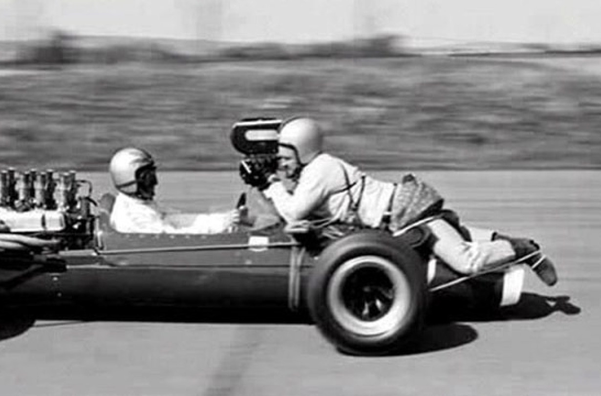 Σύμφωνα με τη Wikipedia η πρώτη helmet camera της ιστορίας θεωρείται αυτή που χρησιμοποίησε ο αναβάτης motocross Dick Garcia to 1986. Όμως σε αυτή τη συλλογή φωτογραφιών εμφανίζονται μερικές τέτοιες λύσεις που έχουν χρησιμοποιηθεί από τον Jackie Stewart στα δοκιμαστικά του Monaco GP του 1966 και από τον Steve McQueen στα γυρίσματα της ταινίας Le Mans, το 1971.