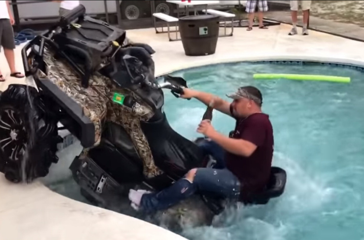 Και βουτάει με το τετράτροχο Can-Am XMR 1000 στην πισίνα του σπιτιού του. Πισίνα βαθιά, όχι αστεία…