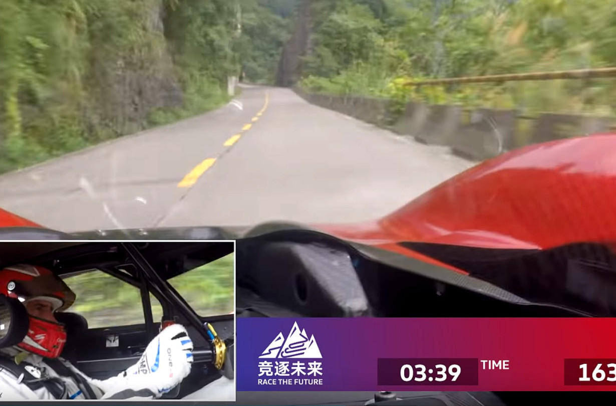 Κατά τη διάρκεια της προπόνησης, ο Dumas σημείωσε χρόνους κοντά στο 8:30, βελτιώνοντας την επίδοσή του στο 8:06 με πιο στεγνή άσφαλτο. Τελικά, ο ατρόμητος Romain Dumas ολοκλήρωσε την ιδιαίτερα απαιτητική διαδρομή σε 7:38.585, πιάνοντας ταχύτητες έως και 230 km/h και παίρνοντας πολλά ρίσκα. Όπως θα δείτε, οδηγός και ανάρτηση δοκιμάστηκαν στο όριο από τα δυνατά χτυπήματα στην άσφαλτο όμως το αποτέλεσμα τους δικαιώνει.