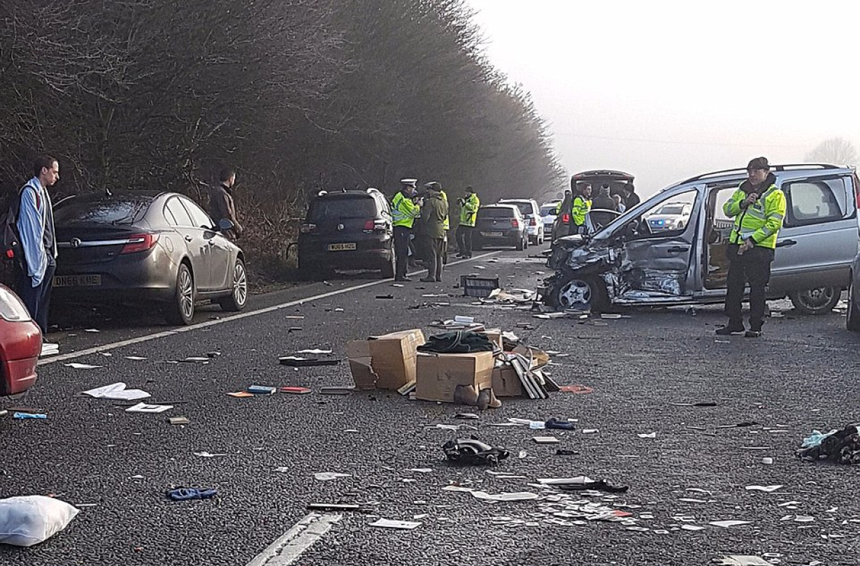 Στην περιοχή επικρατούσε πυκνή ομίχλη και όταν μια γυναίκα έχασε τον έλεγχο του αυτοκινήτου της, οι επερχόμενοι οδηγοί, λόγω πολύ χαμηλής ορατότητας έπεφταν ο ένας πάνω στον άλλον. Οι αυτόπτες μάρτυρες είπαν στην Αστυνομία πως οι ορατότητα δεν ξεπερνούσε τα 50 μέτρα