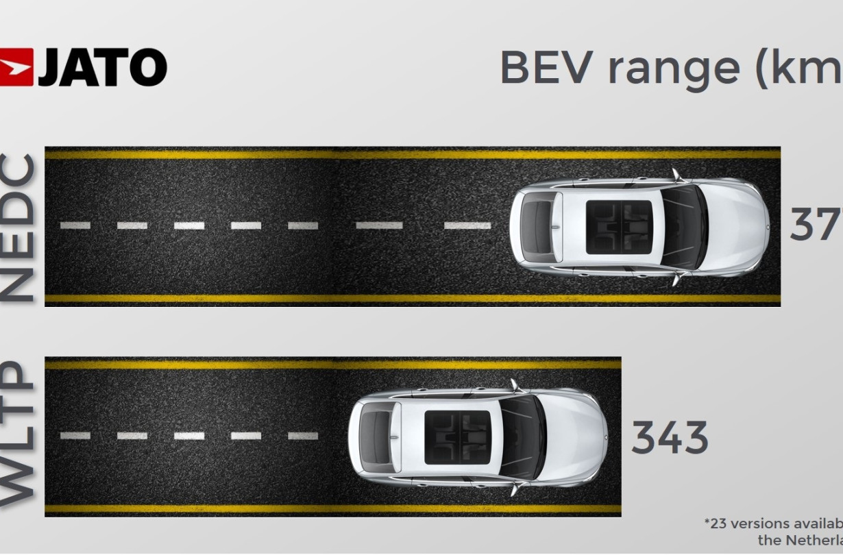 Τα 23 οχήματα που δοκιμάστηκαν από την Jato έχασαν κατά μέσο όρο 27 km αυτονομίας μεταξύ της δοκιμής NEDC και της δοκιμής WLTP: 371 σε NEDC έναντι 343 km σε WLTP.