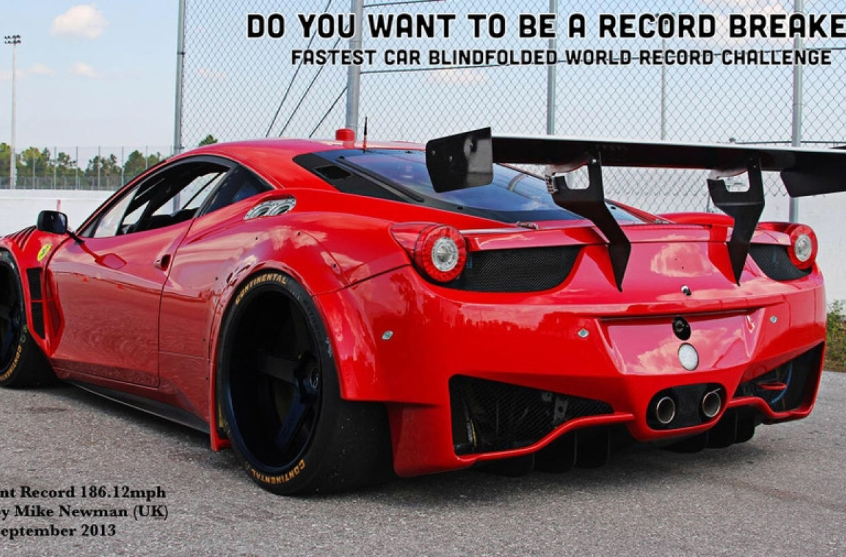 Εκεί θα οδηγήσουν μια μια αγωνιστική Ferrari 458 Challenge της ομάδας Rollcenter Racing. Με την καθοδήγηση του εκπαιδευτή τους που θα ακολουθεί με άλλη αυτοκίνητο θα πρέπει να πιάσουν 320 km/h με κλειστά μάτια και προς τις δύο κατευθύνσεις του διαδρόμου προσγείωσης-απογείωσης, που έχει μήκος 3,2 km.