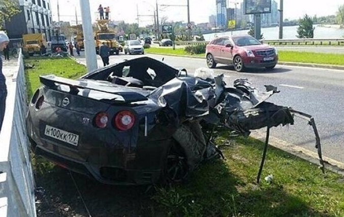 |Ρώσος ποδοσφαιριστής κουρεύει κολόνα με το GT-R του και 170 km/h [video]