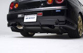 Οι εξωτερικές αναβαθμίσεις ξεκινούν από το εμπρός μέρος, με λεπτομέρειες που χαρίζουν στο Nissan R34 GT-R μια πιο «στοχευμένη» και επιθετική εμφάνιση. Τα φαρδύτερα φτερά και οι εκτεταμένες πλαϊνές ποδιές προσθέτουν δραματικότητα, ενώ στο πίσω μέρος δεσπόζει μια σταθερή διπλή αεροτομή, τοποθετημένη πάνω σε αλουμινένιες βάσεις.