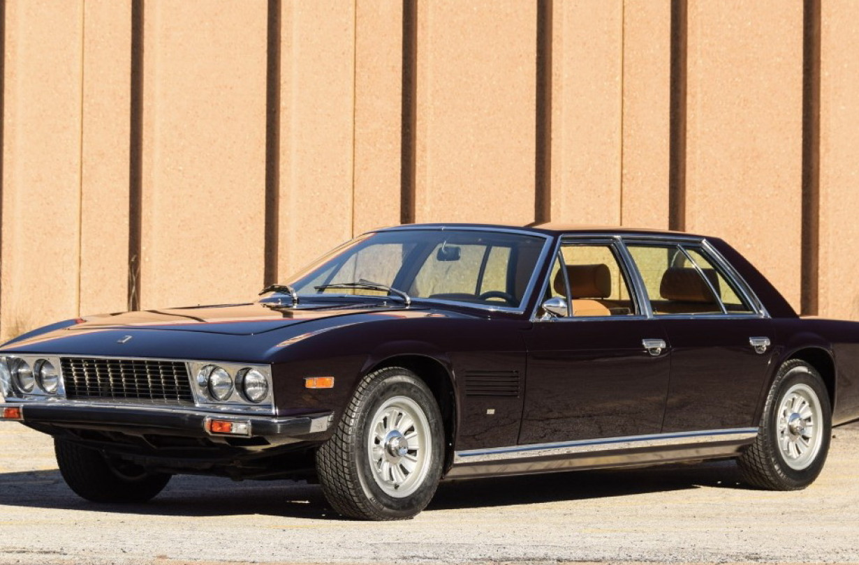 Αν ψάχνεις λοιπόν για σούπερ μπερλίνα από τη δεκαετία του ’70, μια Monteverdi 375/4 είναι μια ωραία επιλογή. Η 375/4 είναι ουσιαστικά μια 375 με δύο πόρτες παραπάνω. Ένα κουπέ διά χειρός Pietro Frua, του ανθρώπου που σχεδίασε το FIAT 1100C Spider, τη Maserati Mistral, αλλά και την εμβληματική Vespa ή το Renault Floride. Παρόλο τους 50+ πόντους από την προσθήκη των πίσω θυρών, ως εκ τούτου και με άφθονο χώρο για τα πόδια των πίσω επιβατών, η μπερλίνα που φιλοτέχνησε ο Frua κατάφερε να κρατήσει την κομψότητα από τις χαμηλές καμπύλες του κουπέ και την αιχμηρή, γεμάτη ακμές μουσούδα του.