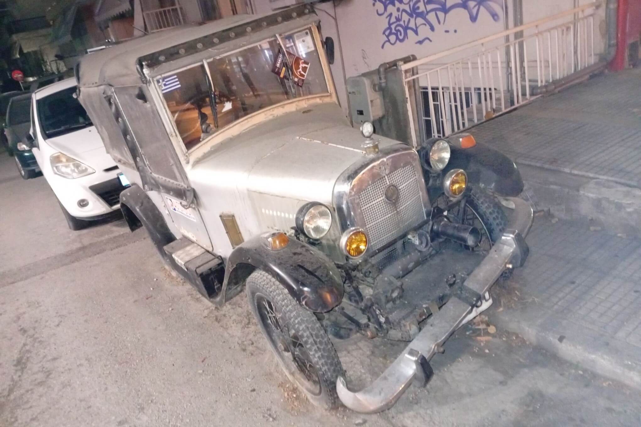 Σε λίγα χρόνια θα συμπληρώσει έναν αιώνα ζωής, μακάρι η επέτειος να το βρει σε καλύτερη κατάσταση. Όχι όπως τώρα με τον πεσμένο προφυλακτήρα και τα ξεφούσκωτα ελαστικά.
