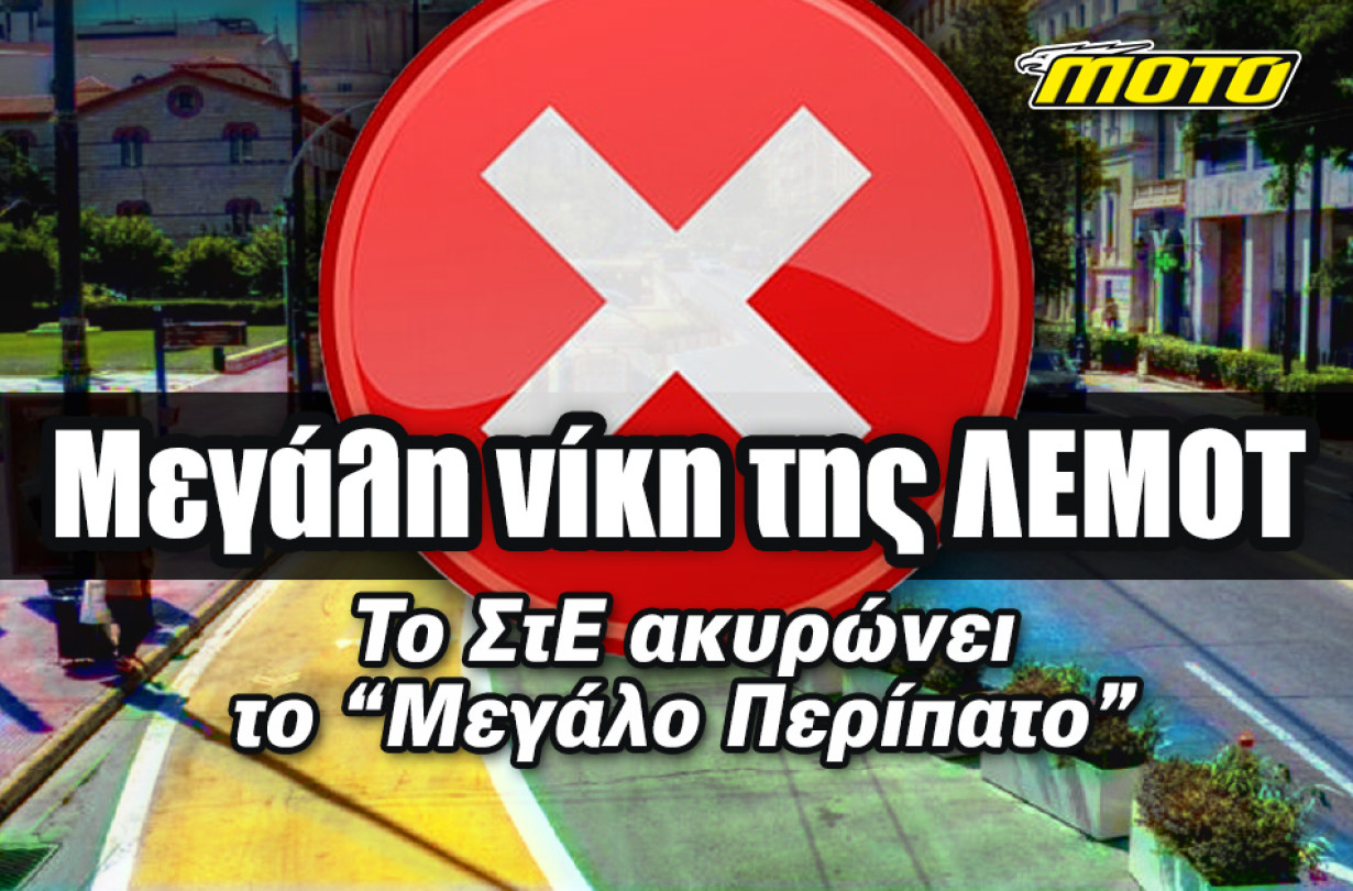 Η προσφυγή στο ΣτΕ έγινε με πρωτοβουλία της ΛΕΜΟΤ, «Λέσχη Ελλήνων Μοτοσυκλετιστών» την συνέταξε και την κατέθεσε ο νομικός της σύμβουλος, για σημαντικούς λόγους που αφορούν τα δίκυκλα πρώτα κι έπειτα και όλους τους πολίτες. Η ΛΕΜΟΤ έθεσε ζητήματα ασφάλειας καθώς και διάθεσης του κόστους για τον «Μεγάλο Περίπατο» με την πρόεδρο του ΣτΕ να στηρίζεται στο γεγονός πως η ΚΥΑ κατέθεσε όλα τα παραπάνω ως πράξεις που σχετίζονται με την αντιμετώπιση του κορωνοϊού. Εκεί βασίζεται και η αιτία της ακύρωσης, με τον Δήμο Αθηναίων να θέλει να επανέλθει με Νόμο αυτή την φορά.