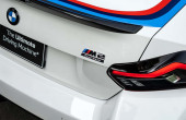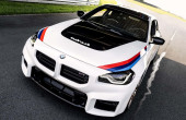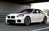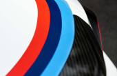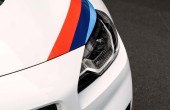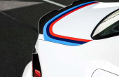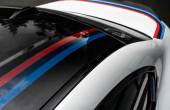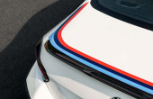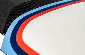 Με φινίρισμα Alpine White, η M2 Turbo Design Edition διαθέτει χειροποίητες ρίγες BMW Motorsport εμπρός και πίσω. Το χαρακτηριστικό τρίχρωμο σχέδιο διατρέχει όλο το αμάξωμα -ακόμη και την οροφή από ανθρακονήματα.