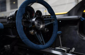 Το εσωτερικό είναι εκπληκτικά αναλογικό, με παραδοσιακά όργανα, χειροκίνητο λεβιέ ταχυτήτων με «χτένι» και περιστροφικά χειριστήρια. Ένα ζευγάρι μπάκετ καθίσματα ολοκληρώνει την εικόνα, ενώ ο συνδυασμός μπλε σουέτ και εκτεθειμένων ανθρακονημάτων τα συνδέει όλα όμορφα.