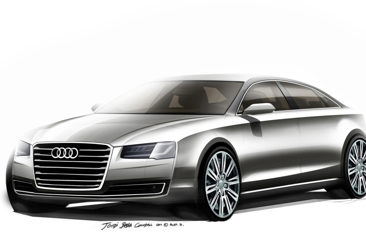 Αυτά τα σχέδια μας δίνουν μια πρώτη εικόνα για τις γραμμές και το πώς θα δείχνει το ανανεωμένο Audi A8 που θα ντεμπουτάρει φυσικά στο Διεθνές Σαλόνι Αυτοκινήτου της Φρανκφούρτης και on line στις 21 Αυγούστου στο κανάλι της Audi.