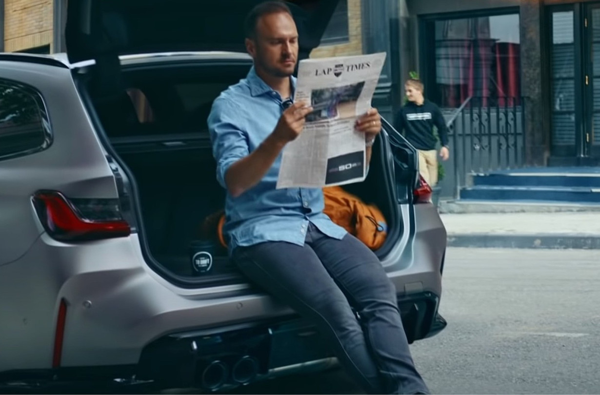 Ο άντρας που κάθεται στο ανοιχτό πορτ παγκάζ της BMW M3 Touring στο 1.20 είναι ο Markus Flasch, υπεύθυνος του τμήματος BMW M, που φαίνεται να διαβάζει μια εφημερίδα με τίτλο "Lap Times". Αυτό ίσως υποδηλώνει πως η πρακτική έκδοση της M3 ίσως επισκεφθεί το Nurburgring με στόχο κάποιο νέο ρεκόρ για την κατηγορία.