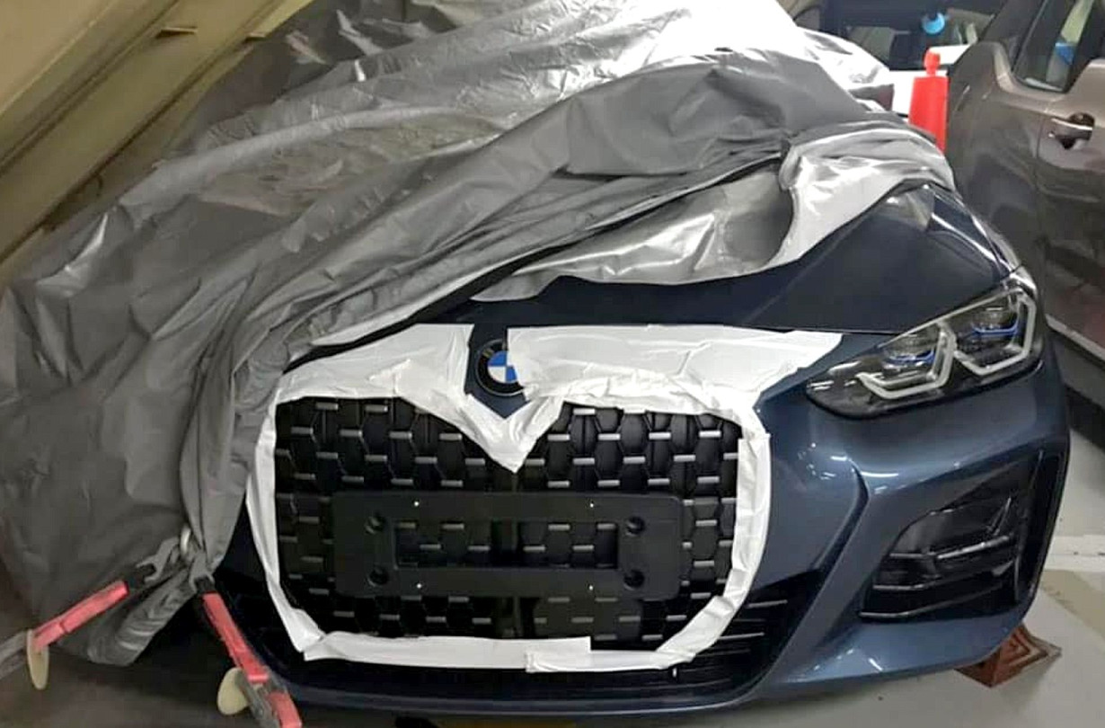 Στη μάσκα, η οποία είναι εν μέρη καλυμμένη με προστατευτικά αυτοκόλλητα, κυριαρχεί η τεράστια kidney grille για την οποία μας είχε προετοιμάσει το Concept 4. Η γρίλια πλαισιώνεται από επιθετικά φώτα LED που μοιάζουν με αυτά της 8 Series Coupé και μεγάλες εισαγωγές αέρα στον προφυλακτήρα.
