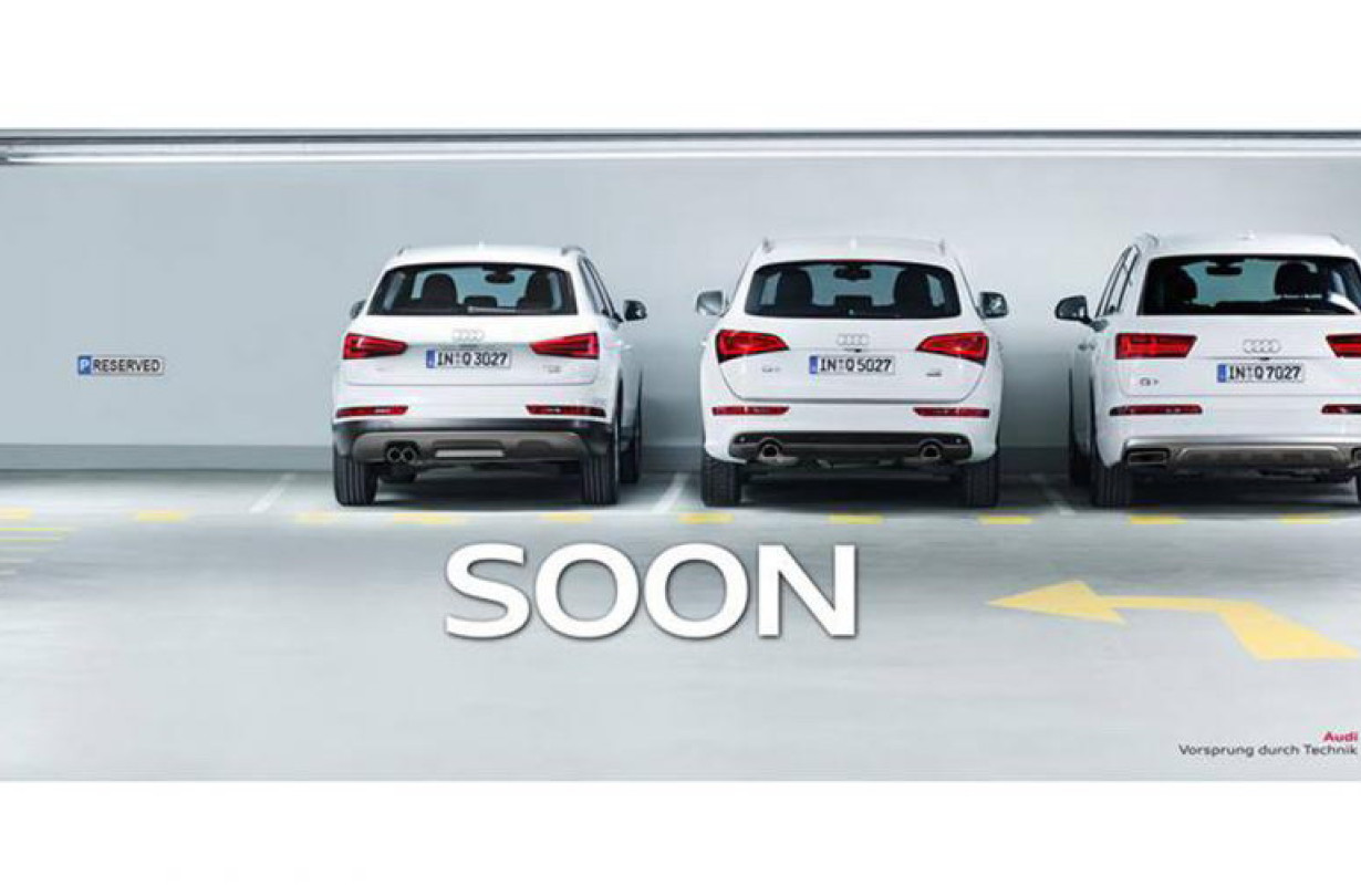 Παρότι δεν ανακοινώνει επίσημα την έλευση του νέου της μοντέλου, η Audi στο teaser της δείχνει τα SUV της, Q7, Q5 και Q3, σε διάταξη μειούμενου μεγέθους, με δίπλα τους μια «ρεζερβέ» θέση και, στο κάτω μέρος της εικόνας, μια επεξηγηματική λέξη: «σύντομα».