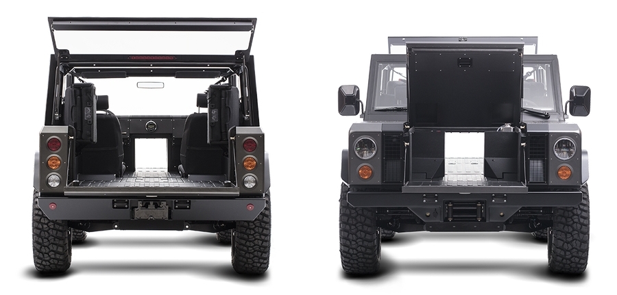 Το αυτοκίνητο ονομάζεται Bollinger B1, και παρότι τα σωθικά του δείχνουν το μέλλον, η εμφάνισή του παραπέμπει σίγουρα στο παρελθόν. Το τετραγωνισμένο αμάξωμά του έχει στοιχεία από μοντέλα όπως το Land Rover Defender και τα Hummer. Το μήκος του είναι μόλις 3,81 m, με μεγάλο πλάτος που αγγίζει το 1,94 m. Η απόσταση από το έδαφος ξεπερνά τους 39 πόντους (!) και σε συνδυασμό με τις τεράστιες γωνίες προσέγγισης, ράμπας, αναχώρησης που φτάνουν τις 56, 33 και 53 μοίρες, αντίστοιχα, υπόσχεται κορυφαίες ικανότητες κίνησης εκτός δρόμου. Άλλωστε έχει και διαφορικά που κλειδώνουν, αλλά και υποπολλαπλασιασμό.