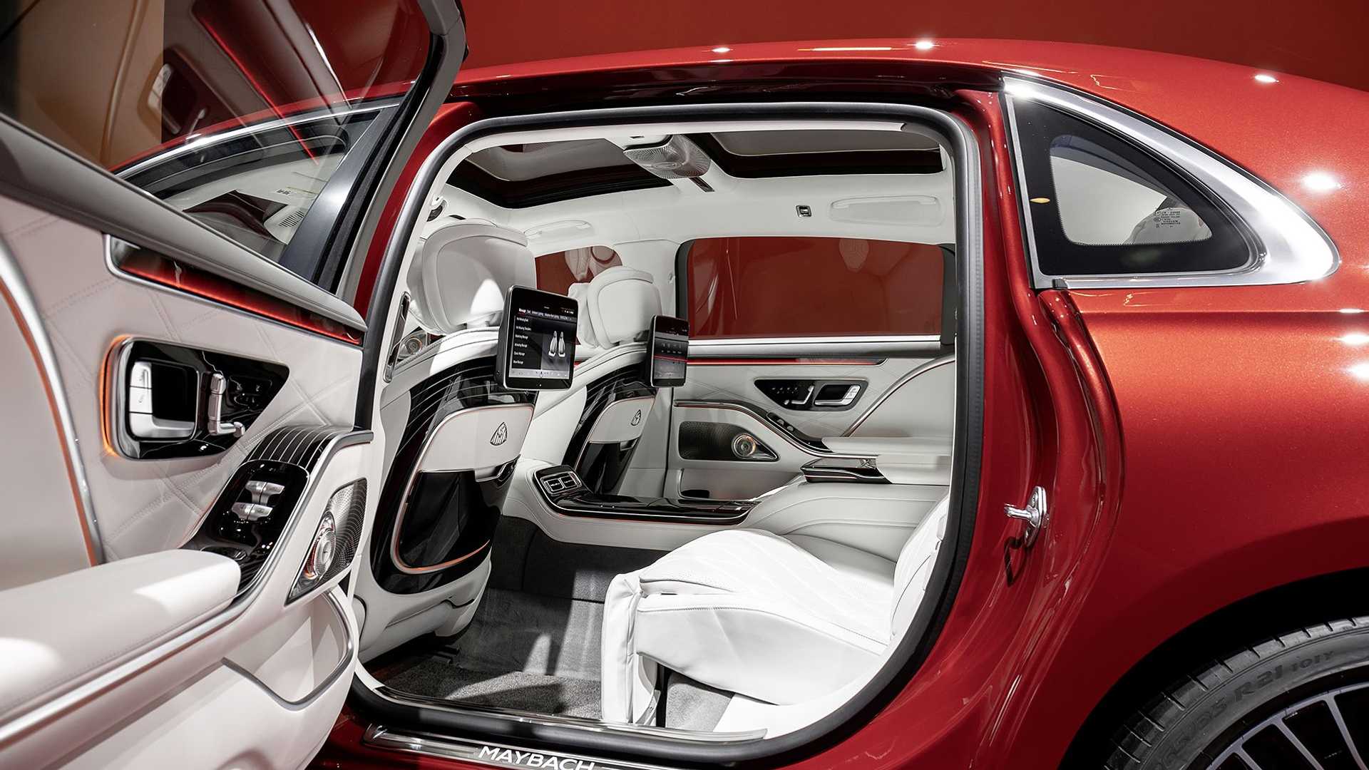 Όπως ήταν αναμενόμενο, οι πίσω θέσεις βρίσκονται στο επίκεντρο της προσοχής των σχεδιαστών της γερμανικής φίρμας. Οι επιβάτες απολαμβάνουν περισσότερο χώρο για τα γόνατα, βελτιωμένο σύστημα ενεργού noise cancelling, αυτόματα προσαρμοζόμενο εσωτερικό φωτισμό, κλιματιζόμενα και ηλεκτρικά ρυθμιζόμενα ανεξάρτητα καθίσματα με πολλαπλές λειτουργίες μασάζ, θερμαινόμενα υποβραχιόνια και πάνελ στις πόρτες, ανακλινόμενα υποπόδια με μασάζ, ανακλινόμενα τραπεζάκια, ψυγείο για σαμπάνιες με ειδικά σχεδιασμένα ποτήρια, διπλή πανοραμική ηλιοροφή και το ηχοσύστημα Burmester® high-end 4D.