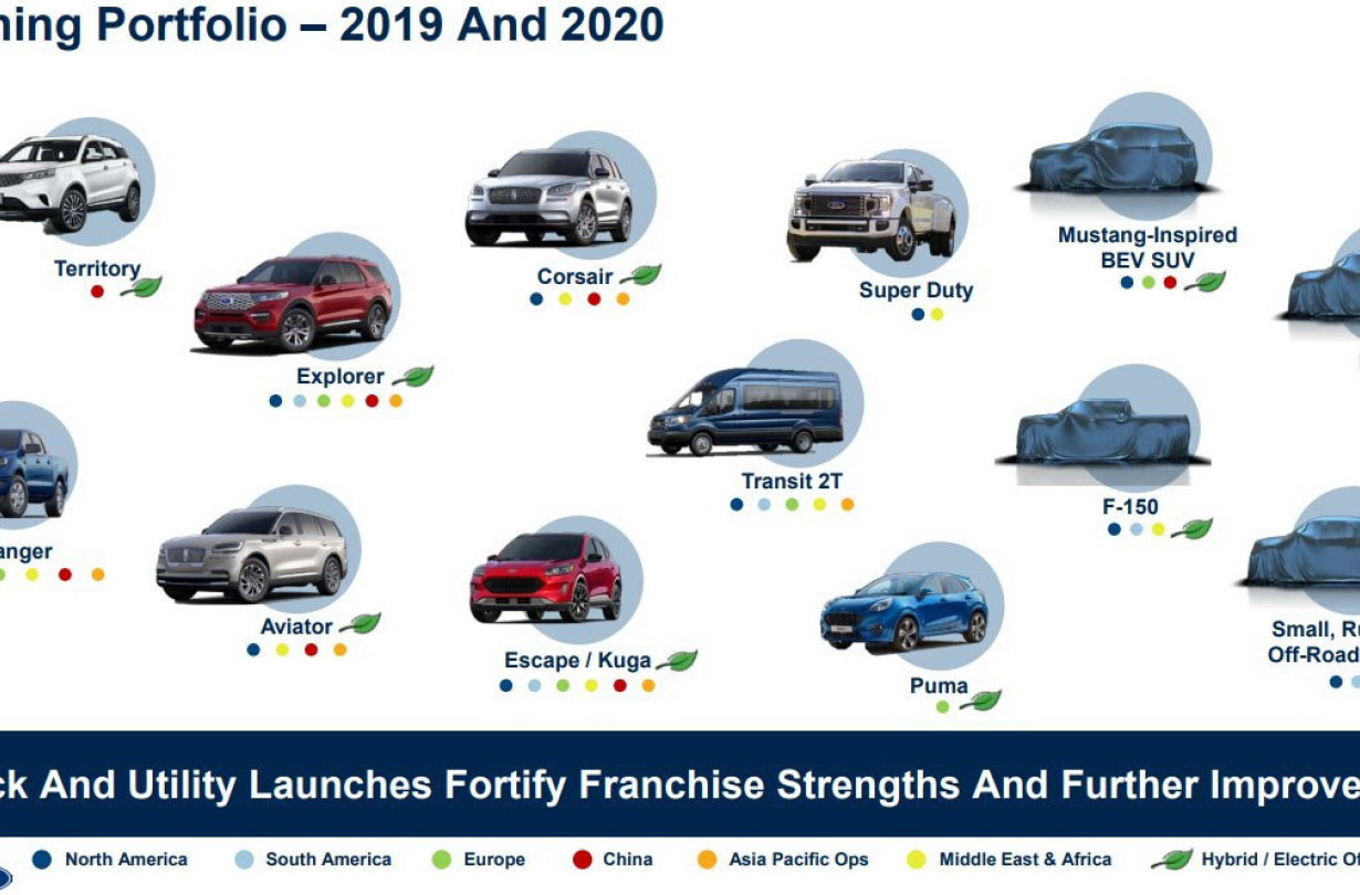 Το έντυπο του οποίου τη φωτογραφία μπορείτε να δείτε ευκρινέστερα στην γκάλερι, επισημοποιεί σε κάθε περίπτωση τις νέες αφίξεις, με το ηλεκτρικό crossover εμπνευσμένο από τη Mustang, ένα καινούργιο ηλεκτρικό F150, το Bronco και το «baby Bronco».