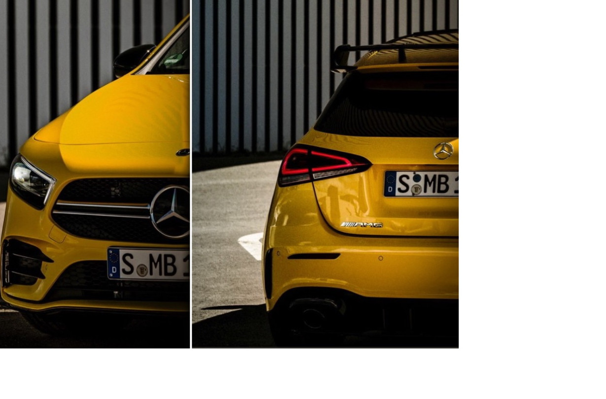 Αναμένοντας λοιπόν την παρουσίαση του αυτοκινήτου, που θα γίνει αργότερα αυτήν την εβδομάδα, η Mercedes-Benz ανέβασε το ενδιαφέρον μέσω του Twitter, δείχνοντας μεγάλα τμήματα του αμαξώματος. Η A 35 θα κάνει το ντεμπούτο με κίτρινη φορεσιά, ένα χρώμα που είναι τελευταίως πολύ στη μόδα για την αυτοκινητοβιομηχανία. Βλέπουμε λοιπόν τη μάσκα με τη διπλή χαρακτηριστική μπαρέτα της AMG, τους ανασχεδιασμένους αεραγωγούς και την πτέρυγα που βγάζει μάτι πάνω από την πόρτα του πορτμπαγκάζ.