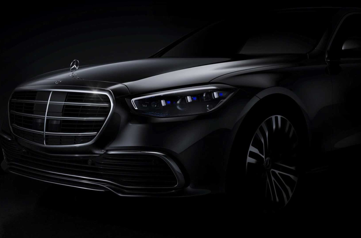 Η πρώτη επίσημη φωτογραφία που παρουσιάζει το εμπρός μέρος της επερχόμενης Mercedes-Benz S-Class χωρίς ίχνος καμουφλάζ.