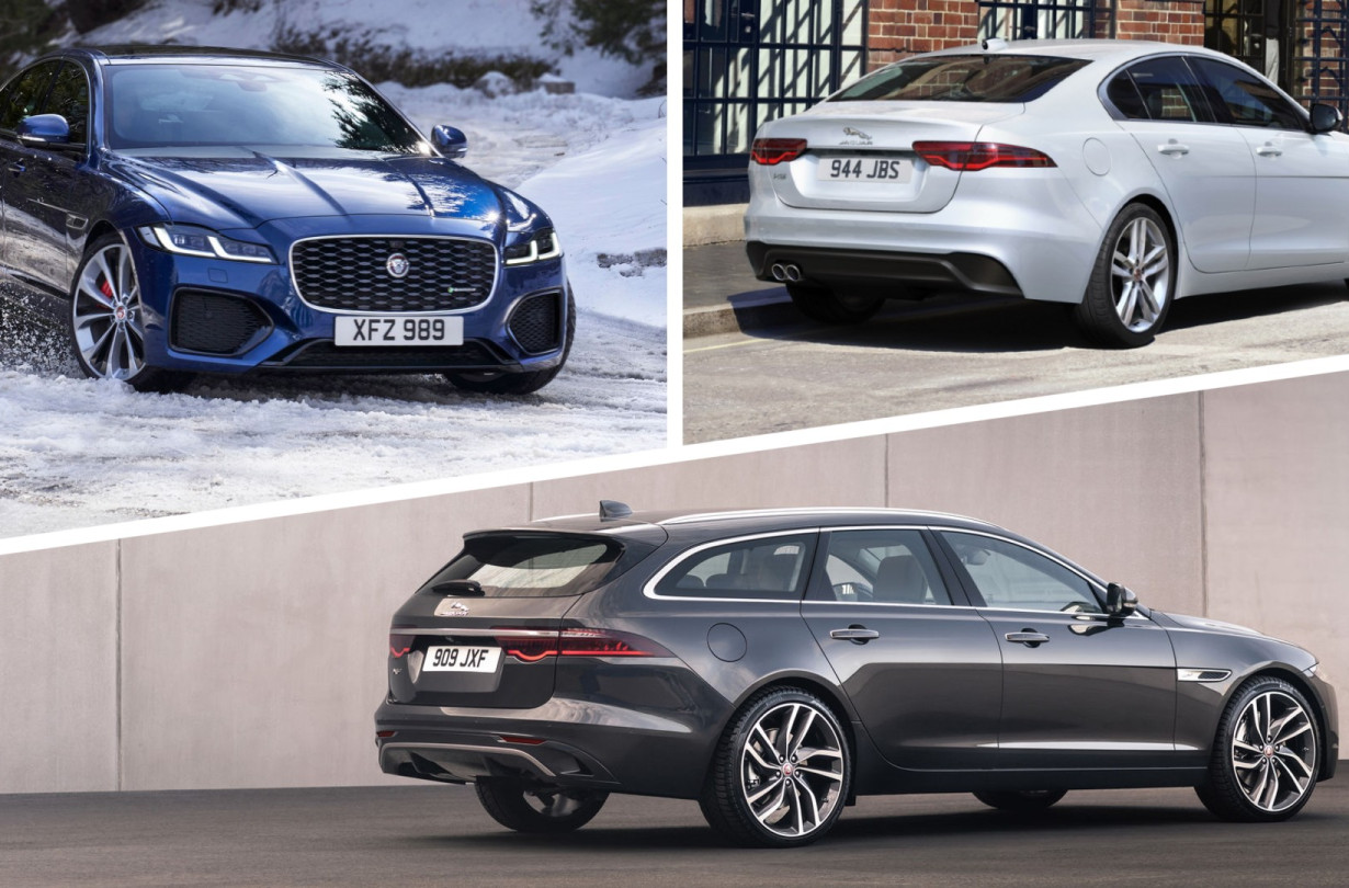 Ξεκινάμε από την μεγαλύτερη εκ των δύο, ανανεωμένη XF (ανταγωνιστής των Audi A6, BMW 5 Series και Mercedes-Benz E-Class) η οποία παραμένει διαθέσιμη σε εκδόσεις αμαξώματος Saloon και Sportbrake, διατηρώντας μια γνώριμη σιλουέτα. Οι σχεδιαστικές επεμβάσεις εντοπίζονται στον ανασχεδιασμένο προφυλακτήρα εμπρός με μεγαλύτερες εισαγωγές αέρα και νέα γρίλια, στα νέα φώτα LED εμπρός/πίσω καθώς και τον ελαφρώς ανασχεδιασμένο πίσω προφυλακτήρα.
