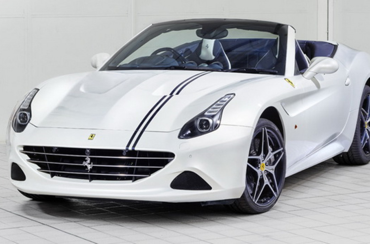 Εμπνευσμένη από το πάθος για τα χρώματα και τις… ιπποδρομίες, η ειδική αυτή California T ξεχωρίζει από την εξωτερική βαφή τριπλής επίστρωσης σε λευκό χρώμα Bianco Italia, από την διπλή έκκεντρα τοποθετημένη μπλε ρίγα και τις ζάντες. Είναι διαμέτρου 20 ιντσών, σφυρήλατες, και διατίθενται σε δύο χρώματα: Blu Hellen και Argento Nurburgring.
