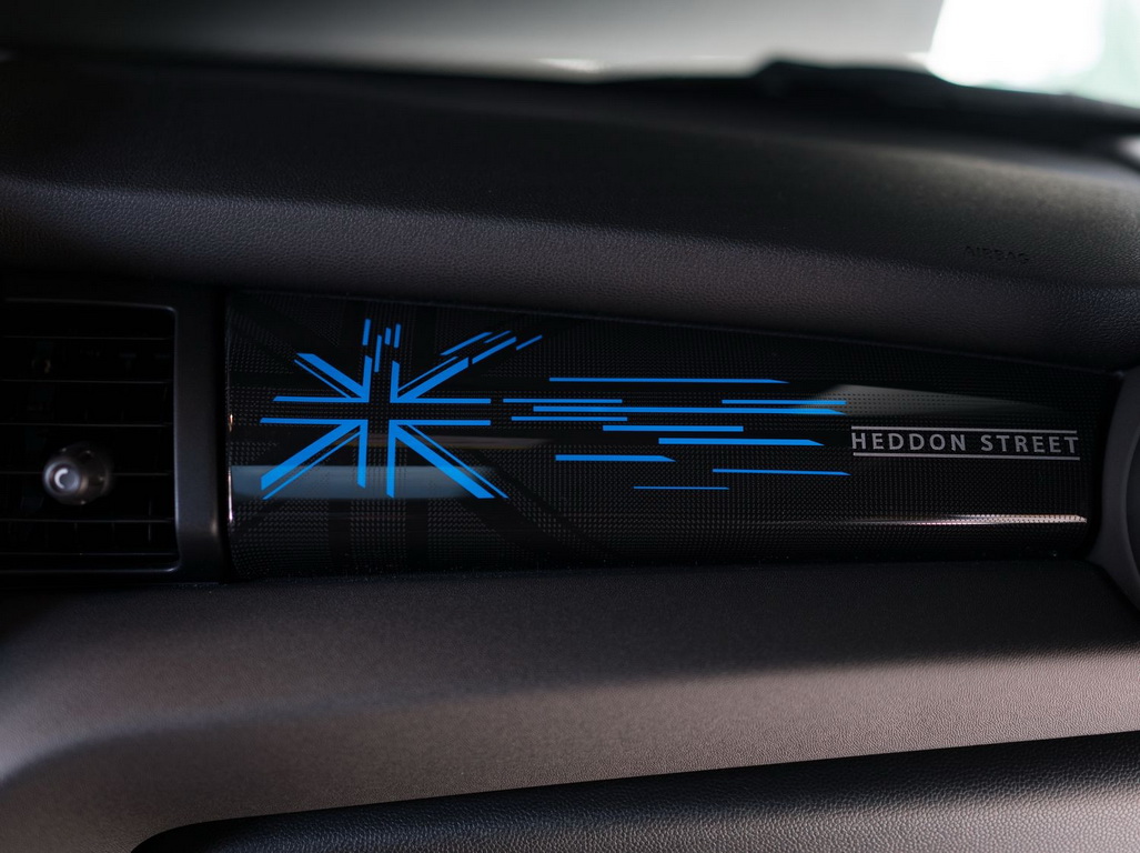 Στο εσωτερικό, στα ταμπλό, υπάρχει ακόμα ένα διακριτικό «Heddon Street» απέναντι από το συνοδηγό, συνοδευόμενο από τη βρετανική σημαία, σε ξεθωριασμένο μπλε χρώμα.