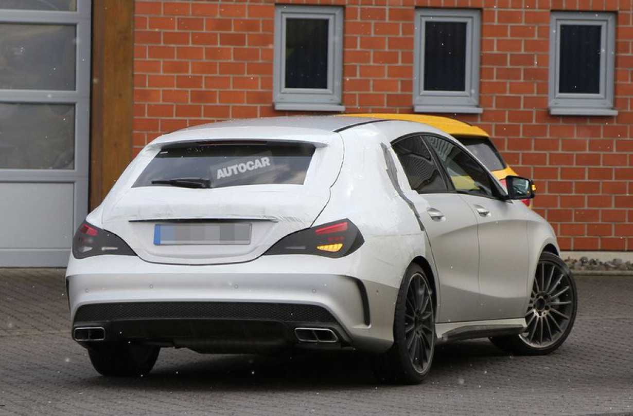 Η Mercedes-Benz CLA45 AMG Shooting Brake του video έχει καμουφλαρισμένο πίσω μέρος, όμως η γραμμή της οροφής και η διαμόρφωση του πίσω παρμπρίζ είναι παραπάνω από εμφανείς.