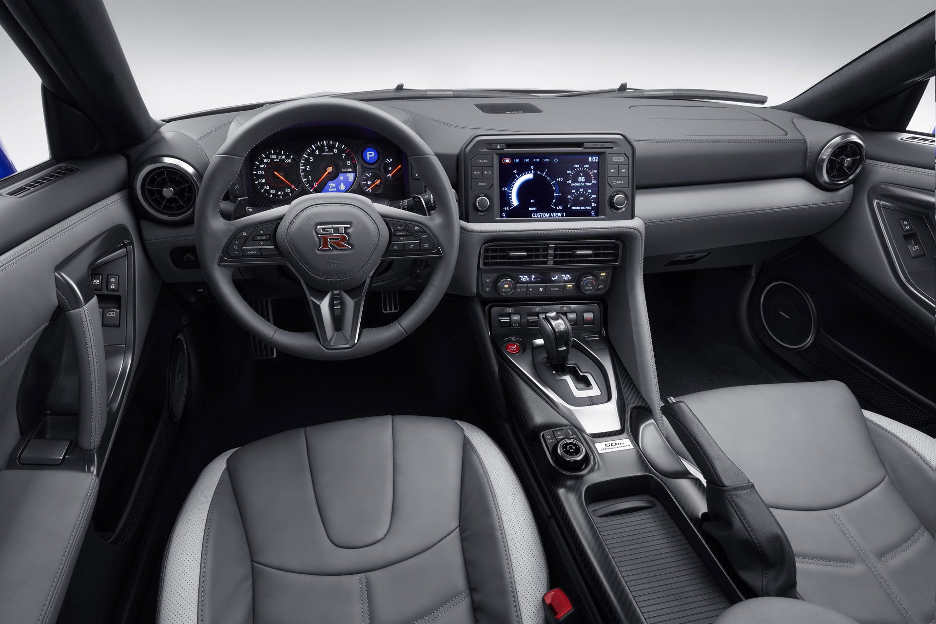 Στο εσωτερικό που προέρχεται από το ανανεωμένο GT-R MY2017, βρίσκουμε επενδύσεις σε διάφορους τόνους του γκρι, οροφή από Alcantara, Nappa leather στα καθίσματα και ειδικά εμβλήματα σε τιμόνι και επιλογέα ταχυτήτων.