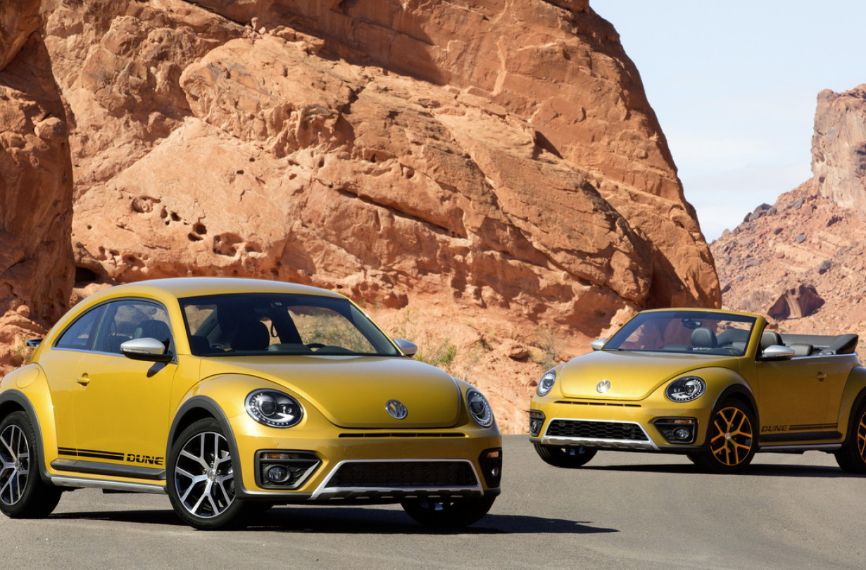 Φυσικά, όσοι προσμένουν μια πραγματικά σκληροτράχηλη έκδοση μάλλον θα απογοητευθούν. Το Beetle Dune έχει τροχούς 18 ιντσών, έχει κίνηση στους εμπρός τροχούς και είναι υπερυψωμένο μόλις κατά 10mm. Περισσότερο βάρος πέφτει στον περιπετειώδη χαρακτήρα, με τις πλαϊνές διακοσμητικές λωρίδες και το χαμηλό κομμάτι του εμπρός προφυλακτήρα. Στο πίσω μέρος, ξεχωρίζει για την μεγάλη αεροτομή, τον προφυλακτήρα νέας σχεδίασης και τα νέα πίσω φώτα LED. Οι εκδόσεις Cabriolet θα είναι με υφασμάτινη οροφή soft top, σε μαύρο χρώμα.
