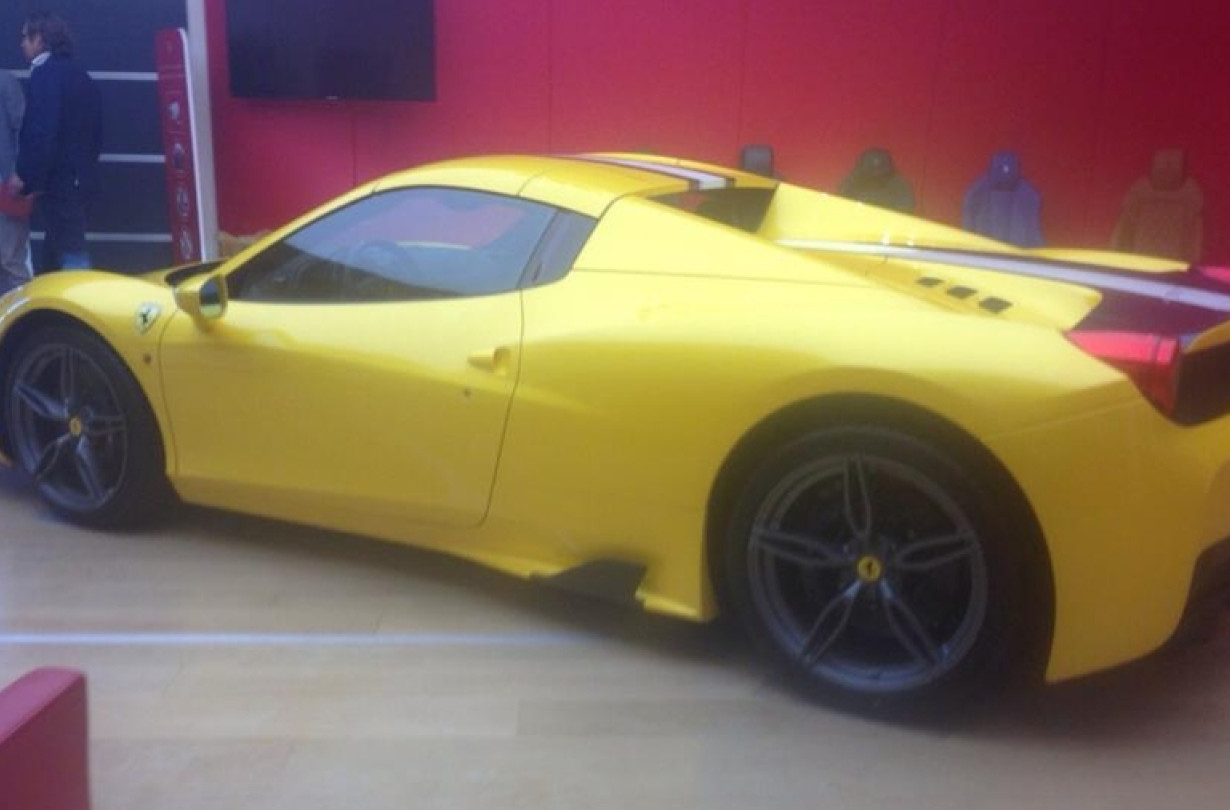 Η ανοιχτή 458 Speciale, που σύμφωνα με τις μέχρι τώρα πληροφορίες θα έχει ένα σαφώς πιο εμπνευσμένο όνομα από το μάλλον προβλέψιμο Speciale Spider, εκτέθηκε σε υποψήφιους πελάτες σε αίθουσα του Maranello και κάποιος εξ' αυτών δεν δίστασε να φωτογραφήσει το κίτρινο μοντέλο προπαραγωγής.