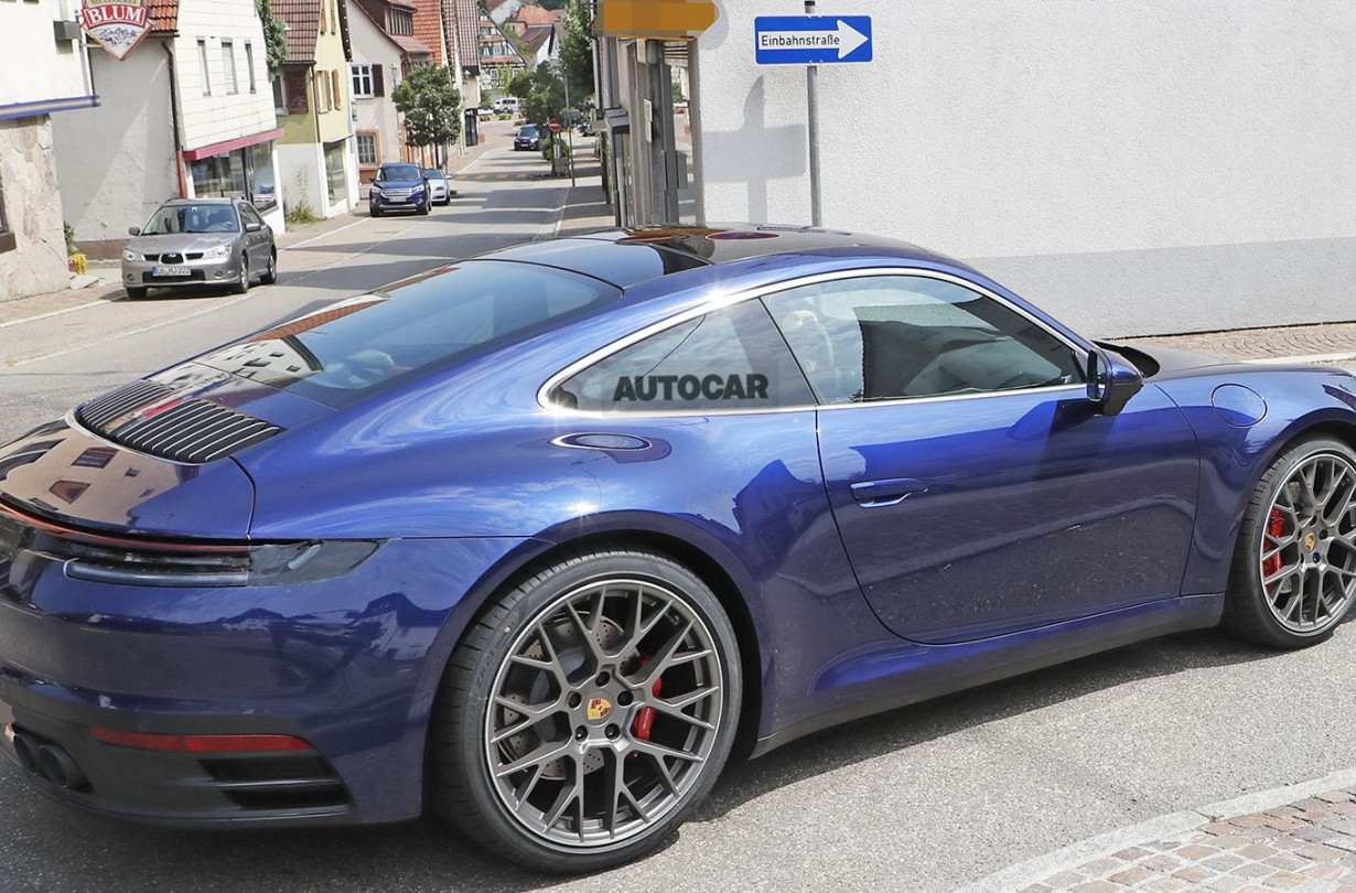 Οι διπλές απολήξεις της εξάτμισης και η διαμόρφωση του πίσω προφυλακτήρα, φανερώνουν ότι δεν πρόκειται για την πιο απλή εκδοχή της 992, την Carrera, αλλά πιθανότατα για την Carrera S. Άλλωστε αυτές είναι οι δύο εκδόσεις που θα παρουσιαστούν πρώτες. Όπως και στην υπάρχουσα Porsche 911, ο κινητήρας τους θα είναι 6κύλινδρος τούρμπο, με ισχύ αυξημένη κατά περίπου 30 PS, σύμφωνα με κάποιες αναφορές, δηλαδή στους 400 και 450 PS, αντίστοιχα. Παράλληλα, το 7τάχυτο κιβώτιο διπλού συμπλέκτη PDK θα δώσει τη θέση του σε ένα 8τάχυτο.