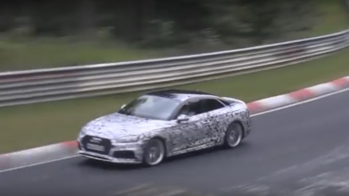 Το RS5 Coupé 2018 δοκιμάζεται με βαρύ καμουφλάζ στην Πράσινη Κόλαση με το νέο 2,9λιτρο διτούρμπινο V6 που εξέλιξε σε συνεργασία με την Porsche.