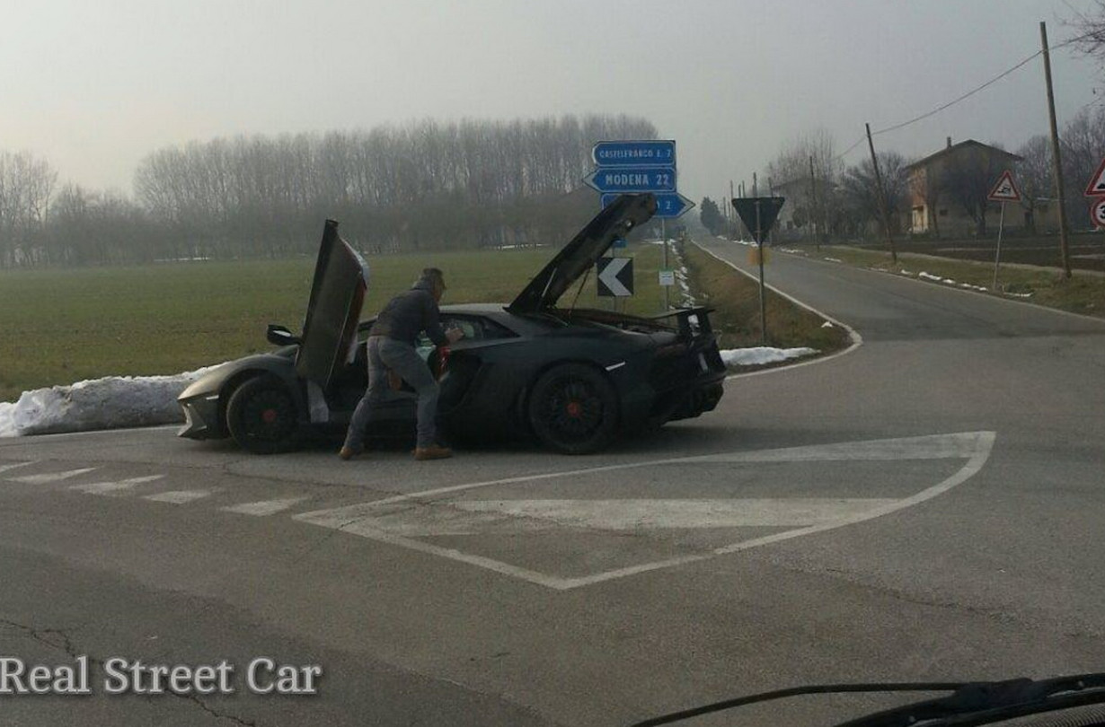 Η Lamborghini Aventador SuperVeloce απαθανατίστηκε πάλι, αλλά αυτή τη φορά με μηχανικό πρόβλημα, κατά τη διάρκεια δοκιμών κοντά στη Modena