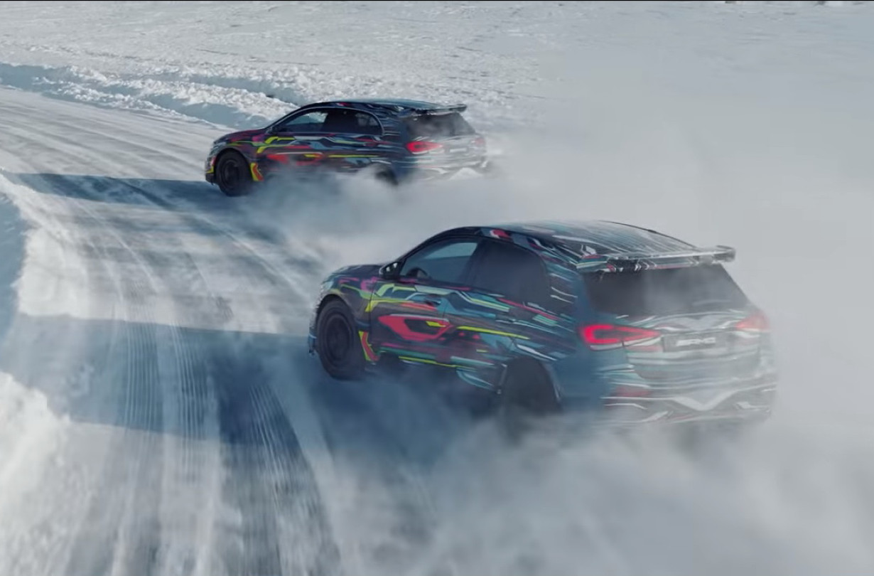 Δεν χρειάζεται όμως να κάνουμε εκτιμήσεις ούτε να έχουμε φαντασία. Η ίδια η Mercedes-AMG ανέβασε video που δείχνει, όχι μία, αλλά δύο από τις νέες Α 45 –με το απαραίτητο καμουφλάζ– να χορεύουν σε παγωμένη πίστα της βόρειας Σουηδίας.