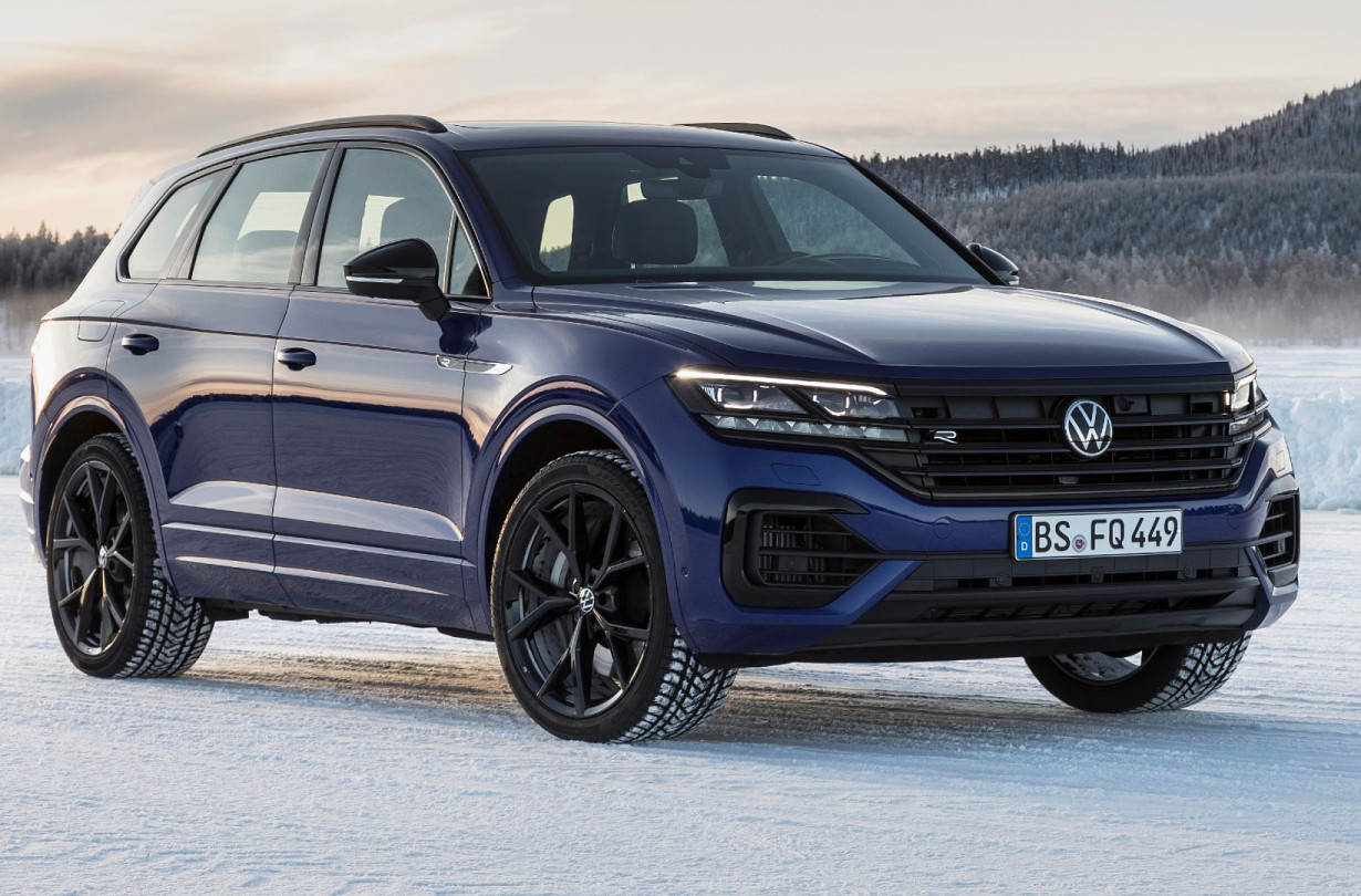 Εξωτερικά, το Touareg R ξεχωρίζει από τους σπορ προφυλακτήρες με προεκτάσεις βαμμένες στο χρώμα του αμαξώματος και εισαγωγές αέρα με μαύρο πλαίσιο (όπως και στο αισθητικό πακέτο R-Line), τις μαύρες λεπτομέρειες σε γρίλια, καθρέφτες, πλαίσιο παραθύρων κτλ, την αποκλειστική απόχρωση Lapiz Blue Metallic (προαιρετική) καθώς και τις μαύρες ζάντες 21" Suzuka ή 22" Estoril.