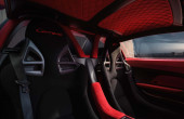 Το εσωτερικό έχει μεταμορφωθεί πλήρως, με εκτεταμένη χρήση κόκκινης Alcantara σε όλη την καμπίνα -ακόμη και στο μπροστινό πορτμπαγκάζ, όπου φιλοξενείται ένα ασορτί σετ αποσκευών.