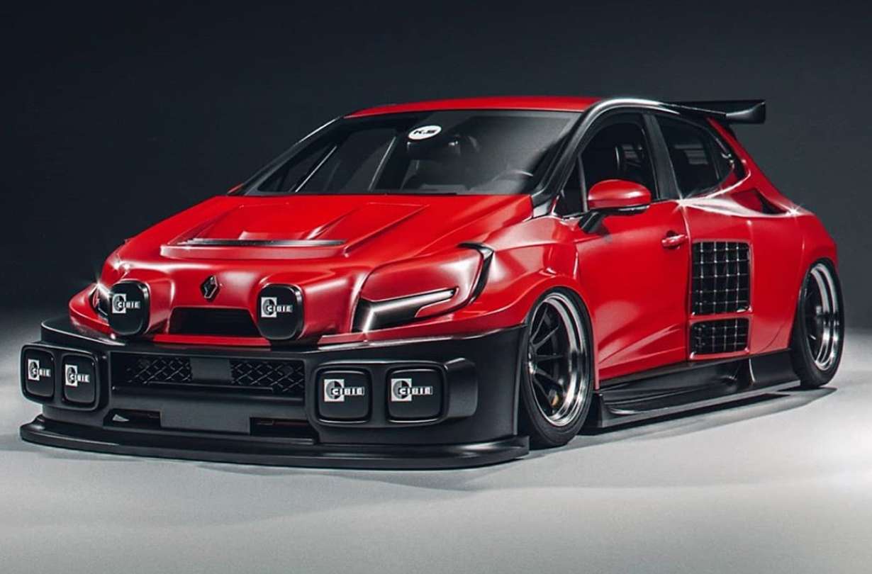 Ως βάση για το τρισδιάστατο μοντέλο χρησιμοποιήθηκε ένα Renault Clio RS Line το οποίο ντύθυκε με υπερφουσκωμένα φτερά, τετραγωνισμένους προφυλακτήρες με επιπλέον προβολείς, καλύμματα για τα φώτα, νέο καπό, σπλίτερ, μαρσπιέ, πλευρικές εισαγωγές αέρα, κομμένο πίσω προφυλακτήρα με διπλές απολήξεις της εξάτμισης, γρίλιες στο πίσω παρμπρίζ και μια μεγάλη φτερούγα στην οροφή. Όπως και στο προηγούμενο project του, ο σχεδιαστής επέλεξε υπερ-φαρδιά ελαστικά τα οποία ακροβατούν στα όρια της επιστημονικής φαντασίας.